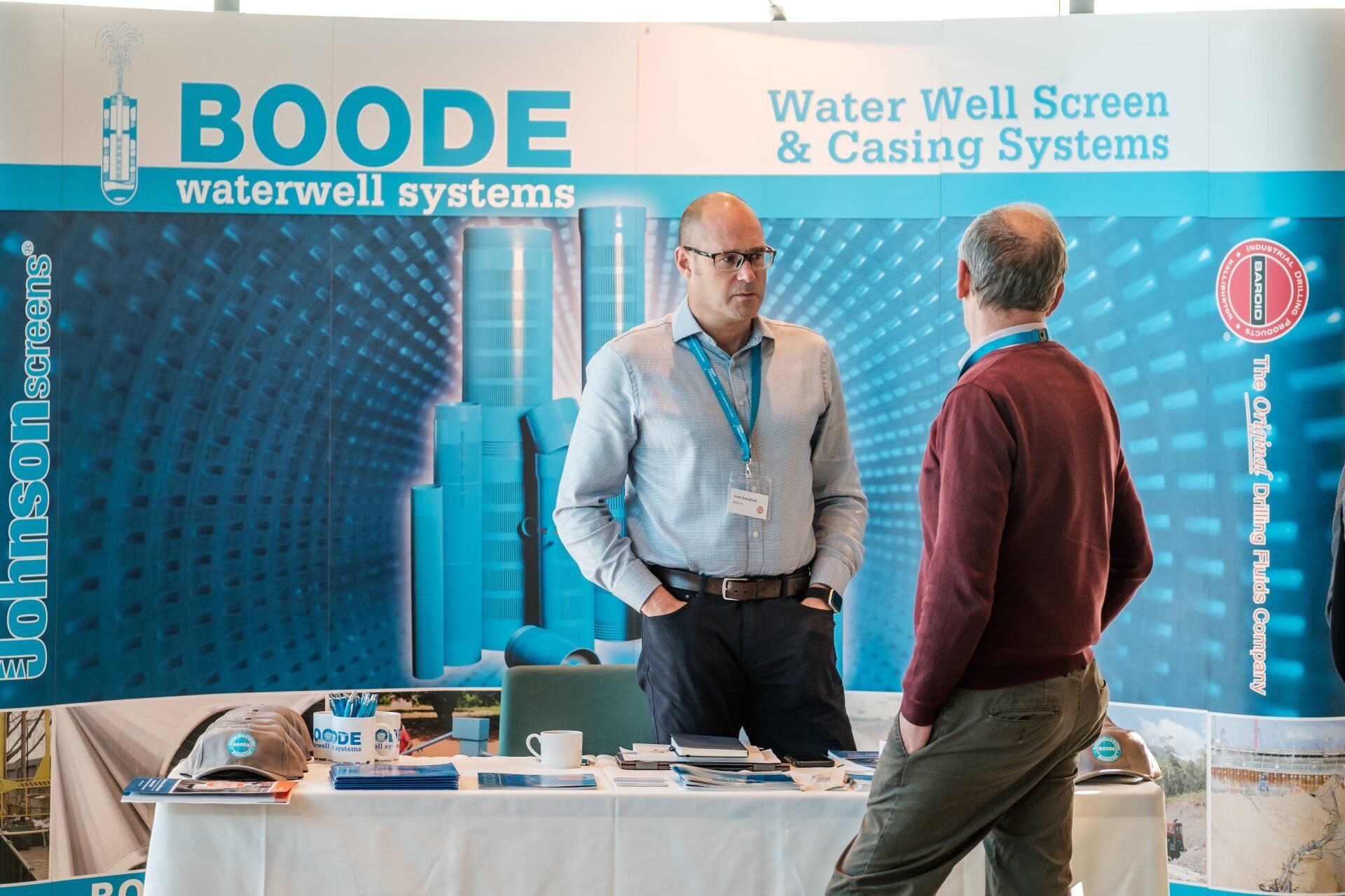 Exhibitors included the Alliance for Water Stewardship, Boode UK Limited, European Geophysical Services Limited, Franklin Electric, Geoquip Water Solutions Limited, In-Situ Europe Limited, Metasphere Limited, and WB & Morgan.